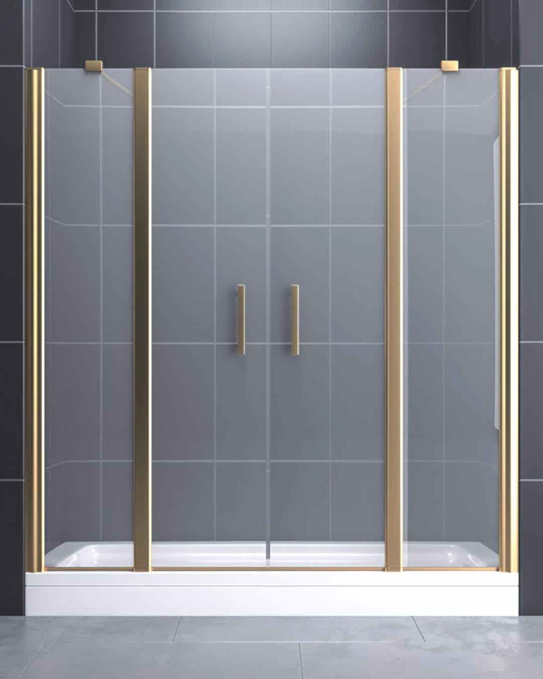 Geniş duş alanları için tasarlanan bu şık model, iki duvar arasına monte edilir ve 2 sabit panel ile boydan boya menteşeli 2 açılır kapıdan oluşur. Geniş ve konforlu bir giriş sunarken, banyonuza modern bir estetik katar.
