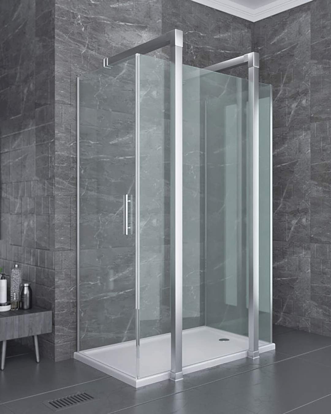 Modern ve ferah banyolar için tasarlanan bu walk-in duş kabini, sabit bir ön cephe ve yan panelden oluşarak konforlu bir yandan giriş alanı sağlar. Bu modelde ayrıca banyonuza sıcak bir dokunuş katacak özel İreko ahşap profil seçeneği de bulunmaktadır.