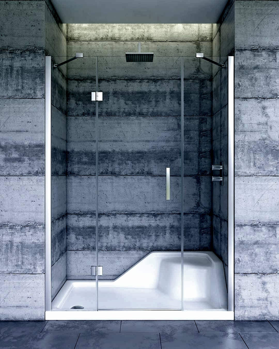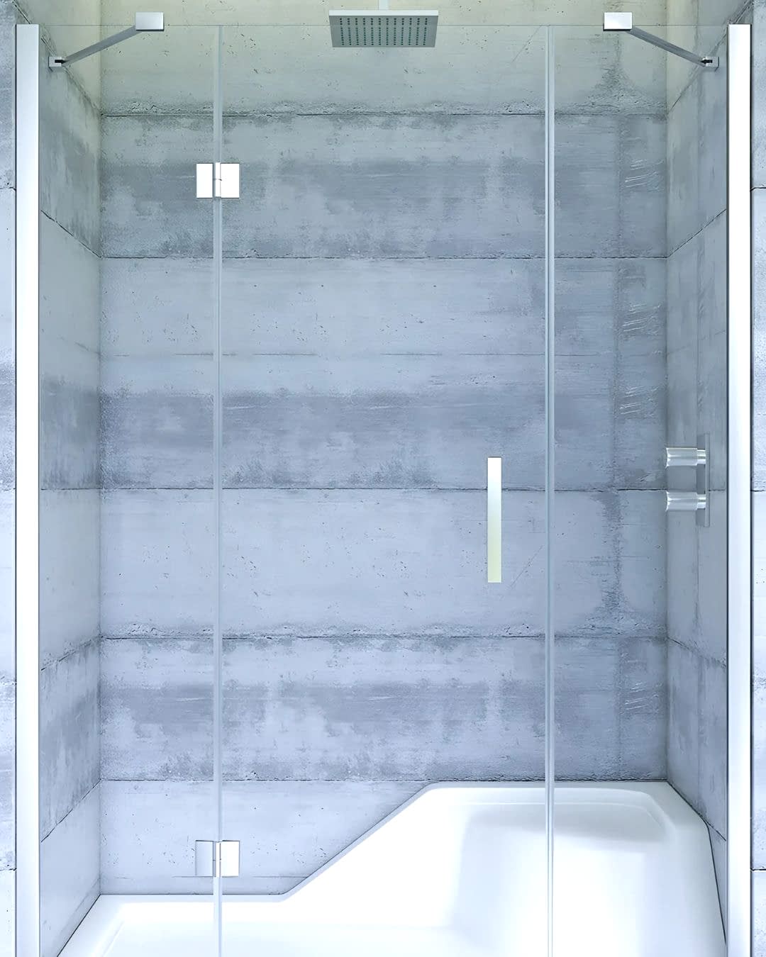 Geniş duş alanları için tasarlanan bu şık model, iki duvar arasına monte edilir ve 2 sabit panel ile nokta menteşeli 1 açılır kapıdan oluşur. Nokta menteşe sistemi, camın zarafetini ön plana çıkaran minimalist ve modern bir görünüm sunar.