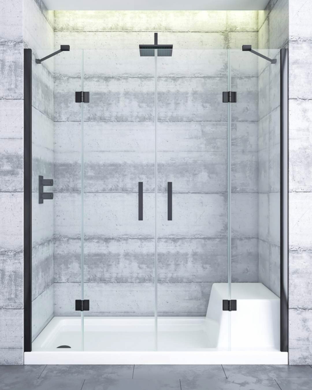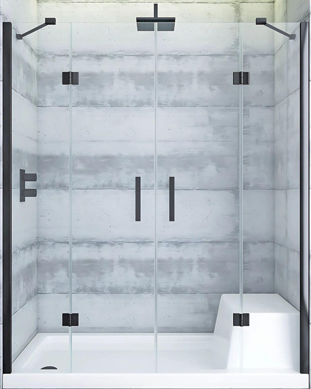 Geniş duş alanları için tasarlanan bu şık model, iki duvar arasına monte edilir ve 2 sabit panel ile nokta menteşeli 2 açılır kapıdan oluşan merkezden açılır bir sisteme sahiptir. Geniş girişi ve minimalist menteşeleriyle modern banyolara ferahlık katar.