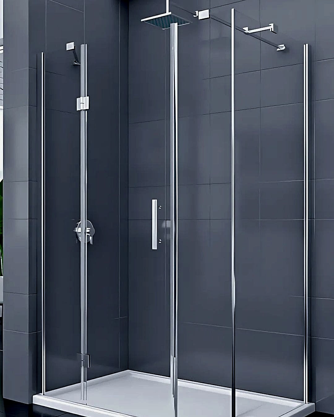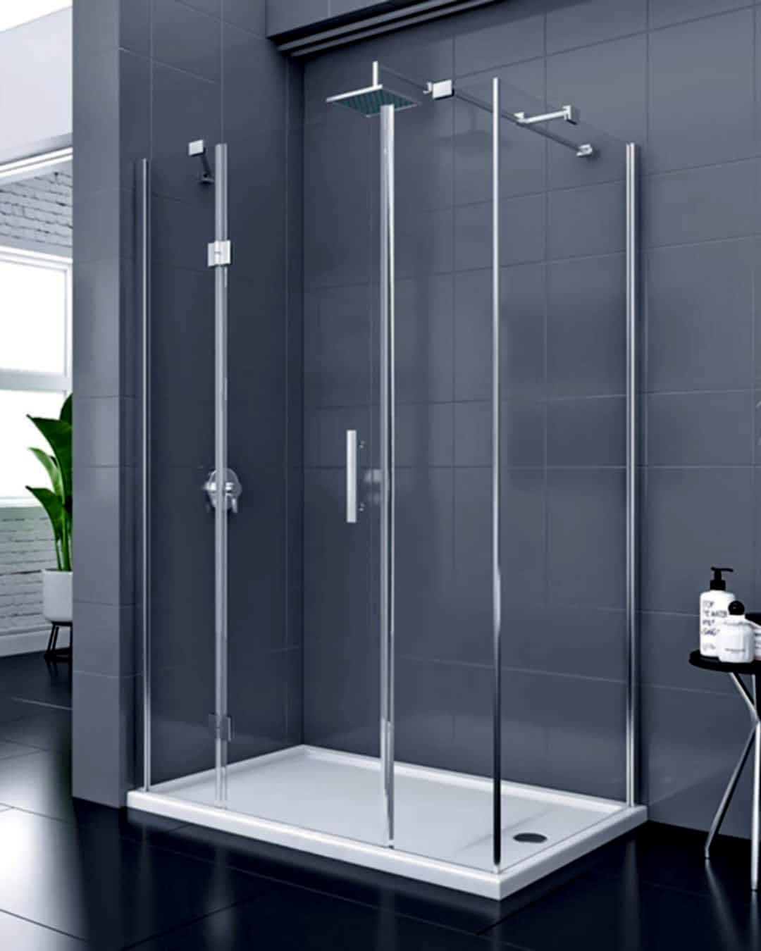 Köşe banyolar için tasarlanan bu şık model, 2 sabit panel, nokta menteşeli 1 açılır kapı ve bir yan panelden oluşur. Nokta menteşe sistemi, camın daha ön planda olduğu minimalist ve modern bir görünüm sunar.