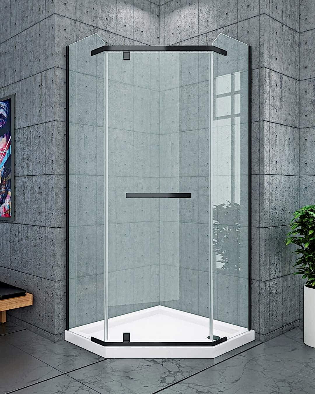 Köşe alanlara estetik bir dokunuş katan bu beşgen duş kabini, 2 sabit panel ile nokta menteşeli 1 açılır kapıdan oluşur. Farklı tasarımı ve minimalist menteşeleriyle banyonuza modern bir hava katar.